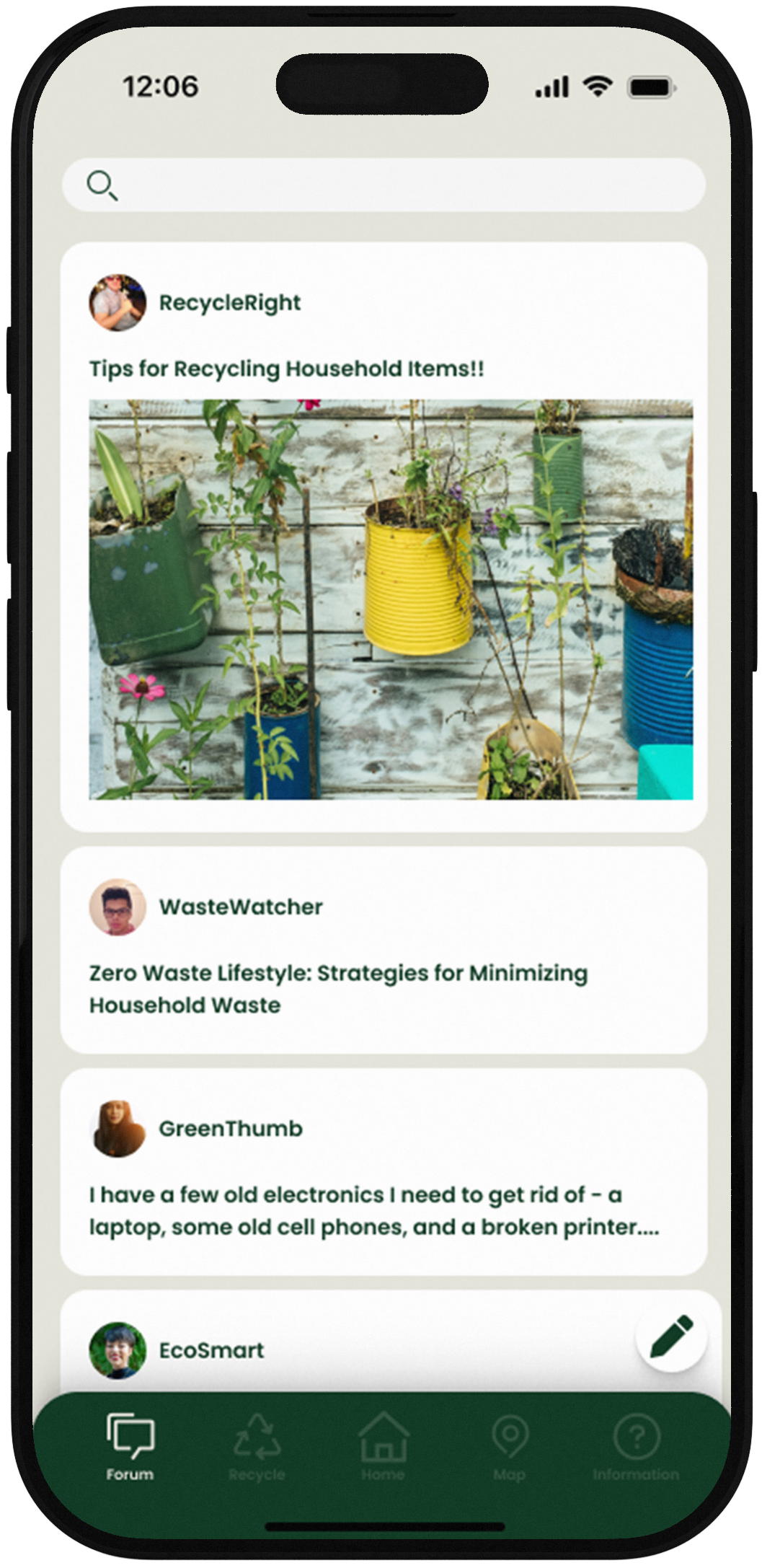 Solution 3: I added a discussion forum for peer learning and an information section with recycling FAQs, offering clear guidance and practical tips while fostering a supportive community for sustainable practices.